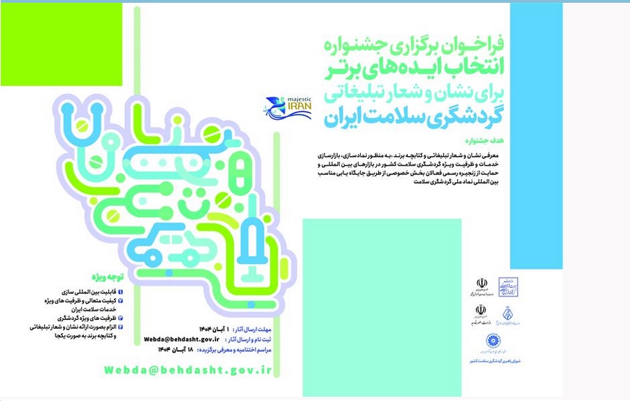 فراخوان برگزاری جشنواره انتخاب ایده های برتر برای نشان و شعار تبلیغاتی گردشگری سلامت